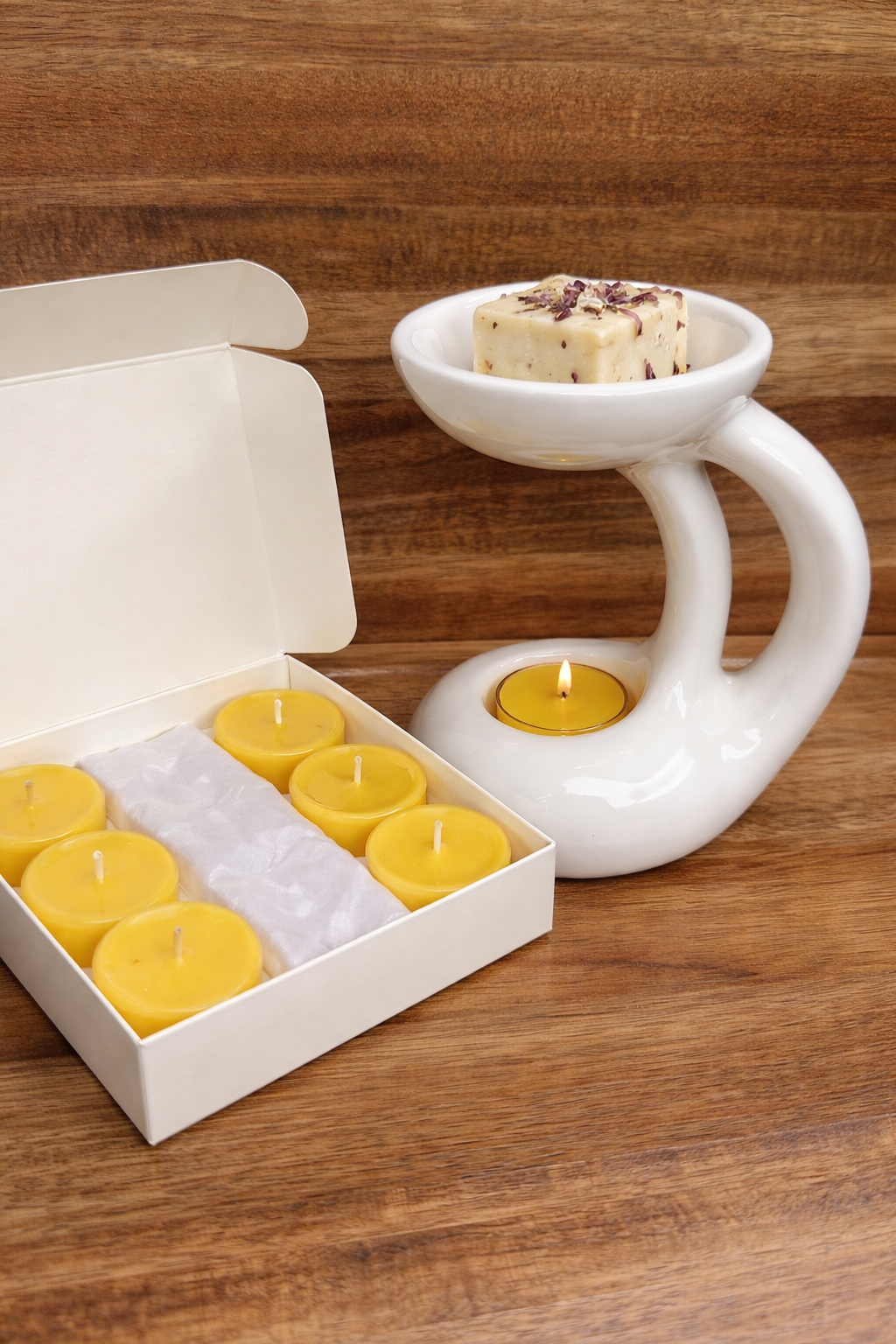 With its soft curves and natural, earthy finish, this burner creates a gentle glow when lit and allows fragrance to slowly diffuse, filling the room with a comforting atmosphere. Perfect for use with wax melts or fragrance oils.